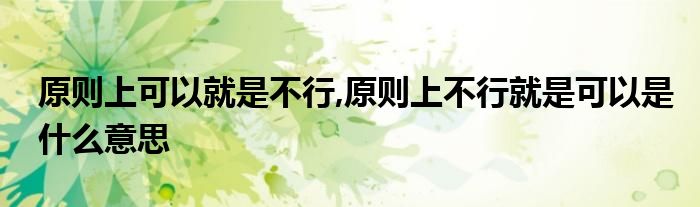 关于原则上可以就是不行,原则上不行就是可以是什么意思这个很多人还不知道,今天菲菲来为大家解答以上的问题,现在让我们一起来看看吧!