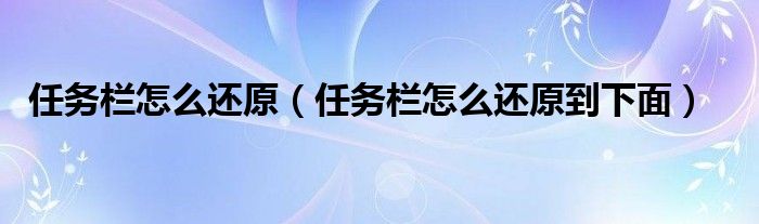 以上就是小编为您介绍的 任务栏怎么还原 到下面,希望能够帮助到您。更多关于任务栏怎么还原的相关资讯,请继续关注IT百科。