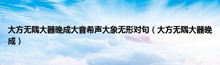 关于大方无隅大器晚成大音希声大象无形对句,大方无隅大器晚成这个很多人还不知道,今天菲菲来为大家解答以上的问题,现在让我们一起来看看吧!