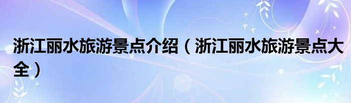 关于浙江丽水旅游景点介绍,浙江丽水旅游景点大全这个很多人还不知道,今天菲菲来为大家解答以上的问题,现在让我们一起来看看吧!