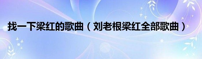 关于找一下梁红的歌曲,刘老根梁红全部歌曲这个很多人还不知道,今天菲菲来为大家解答以上的问题,现在让我们一起来看看吧!