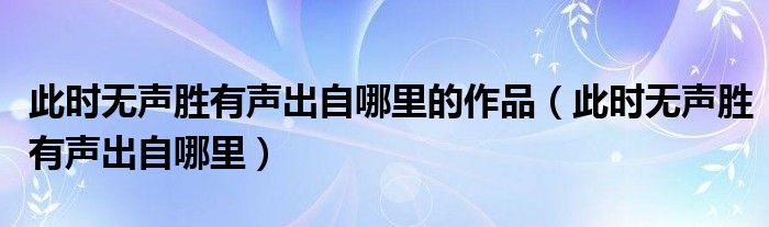 关于此时无声胜有声出自哪里的作品,此时无声胜有声出自哪里这个很多人还不知道,今天菲菲来为大家解答以上的问题,现在让我们一起来看看吧!