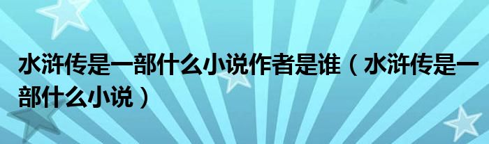 关于水浒传是一部什么小说作者是谁,水浒传是一部什么小说这个很多人还不知道,今天菲菲来为大家解答以上的问题,现在让我们一起来看看吧!