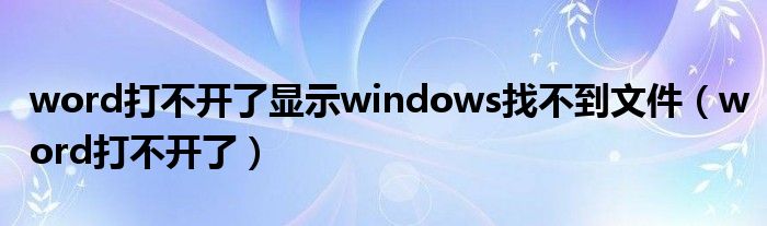 大家好,小飞来为大家解答以上问题,word打不开了显示windows找不到文件,word打不开了很多人还不知道,现在让我们一起来看看吧!