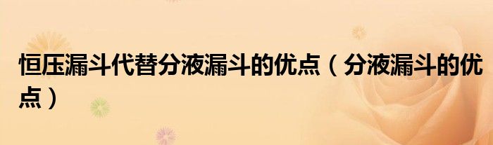 大家好,小晋来为大家解答以下问题,关于恒压漏斗代替分液漏斗的优点,分液漏斗的优点很多人还不知道,今天让我们一起来看看吧!