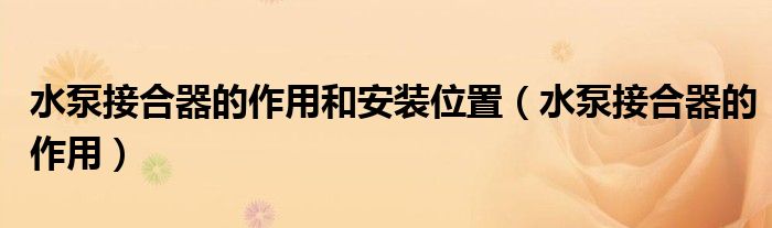 水泵接合器的作用和安装位置(水泵接合器的作用)