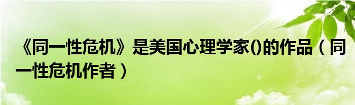 《同一性危机》是美国心理学家()的作品(同一性危机作者)