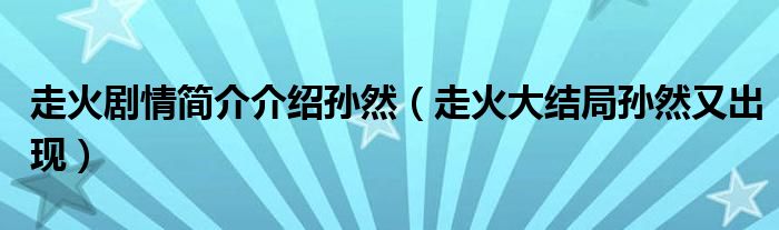 大家好,小晋来为大家解答以下问题,关于走火剧情简介介绍孙然,走火大结局孙然又出现很多人还不知道,今天让我们一起来看看吧!