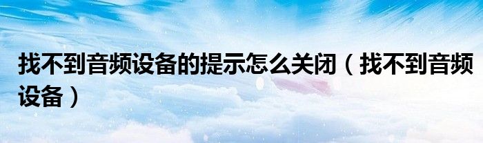 大家好,小飞来为大家解答以上问题,找不到音频设备的提示怎么关闭,找不到音频设备很多人还不知道,现在让我们一起来看看吧!