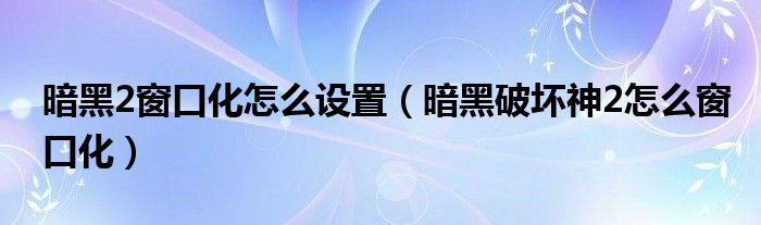 关于暗黑2窗口化怎么设置,暗黑破坏神2怎么窗口化这个很多人还不知道,今天菲菲来为大家解答以上的问题,现在让我们一起来看看吧!