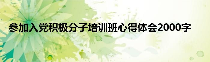参加入党积极分子培训班心得体会2000字