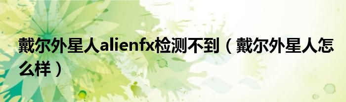 大家好,小飞来为大家解答以上问题,戴尔外星人alienfx检测不到,戴尔外星人怎么样很多人还不知道,现在让我们一起来看看吧!