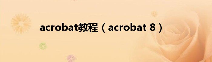 acrobat教程,acrobat 8很多人还不知道,乐乐来为大家解答以上问题,现在让我们一起来看看吧!