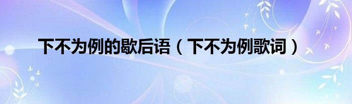 下不为例的歇后语,下不为例歌词这个很多人还不知道,小飞来为大家解答以上的问题。现在让我们一起来看看吧!
