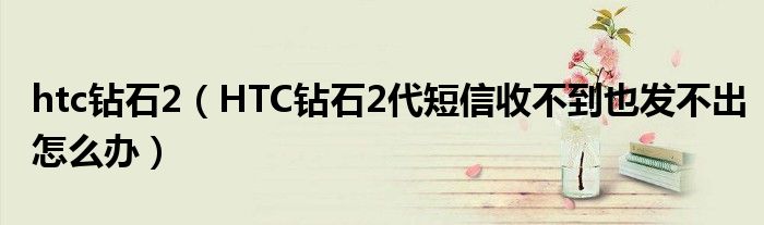 1,HTC钻石2代短信收不到也发不出怎么办:手机无法发送短信的处理方法如下:1.您可更换手机,查看是否能收发短信;2.若可以收发短信,建议您重新将卡插入自己的手机,给自己发送短信查看能否收到;3.若不可以,建议您检查sim卡是否有问题;4.检查手机短信中心号码设置是否正确;5.携带手机卡到当地营业厅检测或补换手机卡。接收不到短信或验证码可能存在以下情况:1、检查信箱是否已满,如果是请删除部分信息;2、如删除后仍无法收到,建议您换机或换卡测试,看是否为硬件原因所致;3、检查是否被手机拦截软件拦截;4、查看手机信号是否正常,尝试在其他地点测试能否接收。排除以上原因后仍无法正常使用,请您联系当地的人工客服处理此问题。