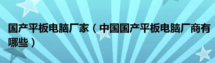 1,中国国产平板电脑厂商有哪些:联想,台电,原道,昂达,纽曼,智器,酷比魔方,帅酷,爱国者,艾诺,蓝魔,五元素,万利达, 杰拓, 优派 ,佳的美 ,爱可 ,神舟 ,海信,等等,还有些山寨的的就不说了