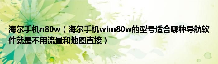 1,海尔手机whn80w的型号适合哪种导航软件就是不用流量和地图直接:这款手机不好,它卖点说是2G储存卡,可随知道GPS导航占去1.5G,