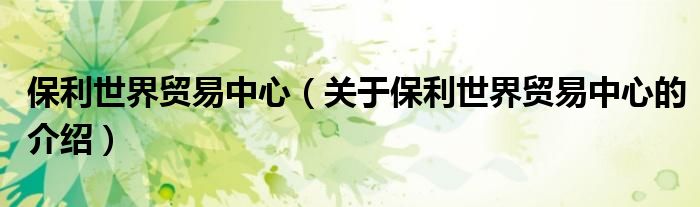大家好,今天小乐来为大家解答以上的问题。保利世界贸易中心,关于保利世界贸易中心的介绍很多人还不知道,现在让我们一起来看看吧!