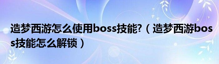 关于造梦西游怎么使用boss技能?,造梦西游boss技能怎么解锁这个很多人还不知道,今天菲菲来为大家解答以上的问题,现在让我们一起来看看吧!