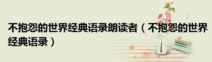 关于不抱怨的世界经典语录朗读者,不抱怨的世界经典语录这个很多人还不知道,今天菲菲来为大家解答以上的问题,现在让我们一起来看看吧!