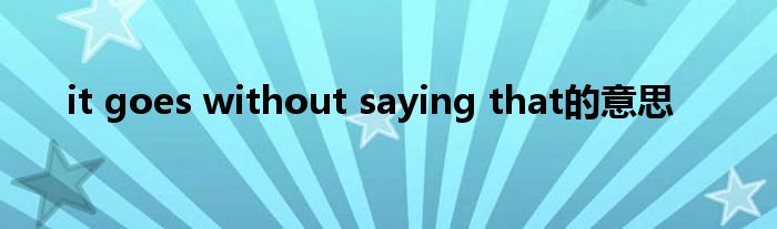关于it goes without saying that的意思这个很多人还不知道,今天菲菲来为大家解答以上的问题,现在让我们一起来看看吧!