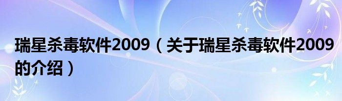 大家好,今天小乐来为大家解答以上的问题。瑞星杀毒软件2009,关于瑞星杀毒软件2009的介绍很多人还不知道,现在让我们一起来看看吧!