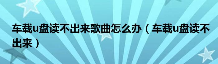 关于车载u盘读不出来歌曲怎么办,车载u盘读不出来这个很多人还不知道,今天菲菲来为大家解答以上的问题,现在让我们一起来看看吧!