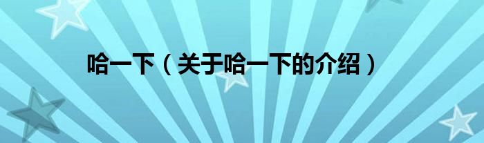 大家好,小都来为大家解答以上的问题。哈一下,关于哈一下的介绍很多人还不知道,现在让我们一起来看看吧!