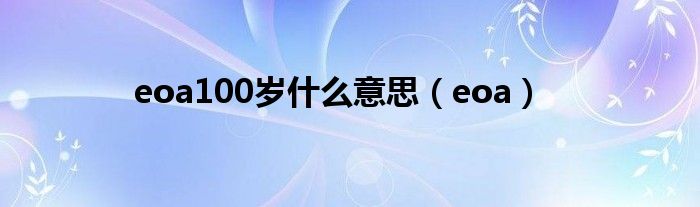 关于eoa100岁什么意思,eoa这个很多人还不知道,今天菲菲来为大家解答以上的问题,现在让我们一起来看看吧!