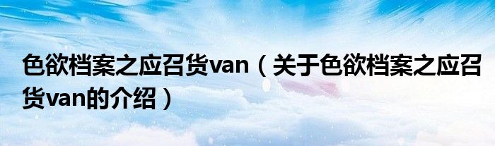 1、《色欲档案之应召货VAN》是由谭干聪执导的爱情动作片,可怡妹、梁焯满参加演出。