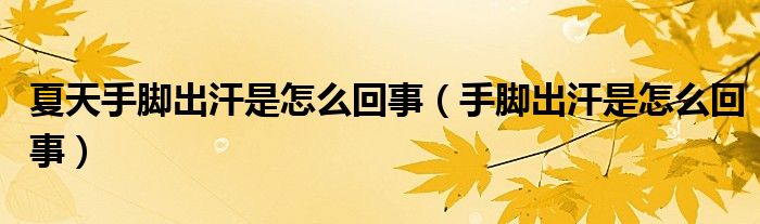 关于夏天手脚出汗是怎么回事,手脚出汗是怎么回事这个很多人还不知道,今天菲菲来为大家解答以上的问题,现在让我们一起来看看吧!