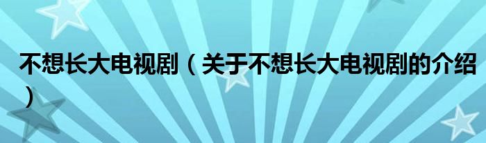 大家好,小都来为大家解答以上的问题。不想长大电视剧,关于不想长大电视剧的介绍很多人还不知道,现在让我们一起来看看吧!