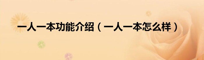 一人一本功能介绍,一人一本怎么样这个很多人还不知道,小飞来为大家解答以上的问题。现在让我们一起来看看吧!