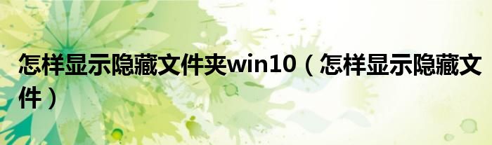 大家好,小飞来为大家解答以上问题,怎样显示隐藏文件夹win10,怎样显示隐藏文件很多人还不知道,现在让我们一起来看看吧!