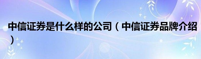 大家好,小源来为大家解答以上问题。中信证券是什么样的公司,中信证券品牌介绍很多人还不知道,现在让我们一起来看看吧!