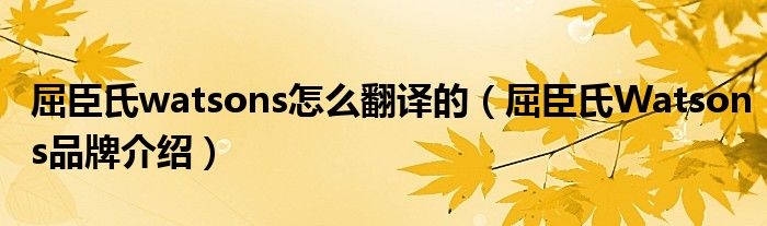 大家好,小源来为大家解答以上问题。屈臣氏watsons怎么翻译的,屈臣氏Watsons品牌介绍很多人还不知道,现在让我们一起来看看吧!