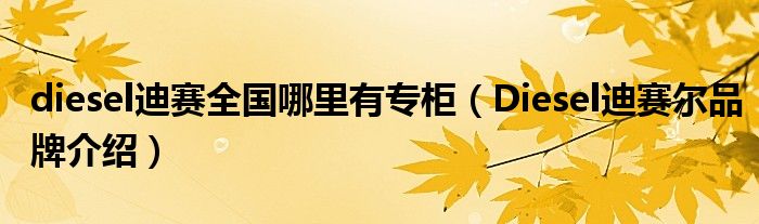 大家好,小源来为大家解答以上问题。diesel迪赛全国哪里有专柜,Diesel迪赛尔品牌介绍很多人还不知道,现在让我们一起来看看吧!