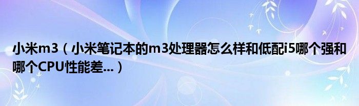 大家好,小常来为大家解答以上问题。小米m3,小米笔记本的m3处理器怎么样和低配i5哪个强和哪个CPU性能差...很多人还不知道,现在让我们一起来看看吧!