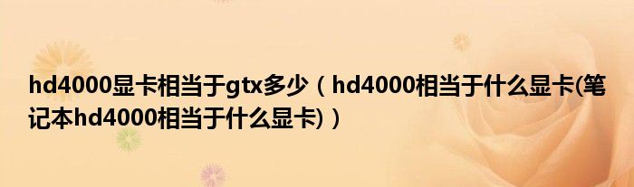 大家好,小常来为大家解答以上问题。hd4000显卡相当于gtx多少,hd4000相当于什么显卡(笔记本hd4000相当于什么显卡)很多人还不知道,现在让我们一起来看看吧!