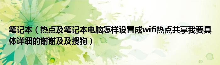 1,笔记本电脑怎样设置成wifi热点共享我要具体详细的谢谢 搜狗: