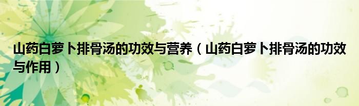 大家好,linda来为大家解答以上的问题。山药白萝卜排骨汤的功效与营养,山药白萝卜排骨汤的功效与作用很多人还不知道,现在让我们一起来看看吧!