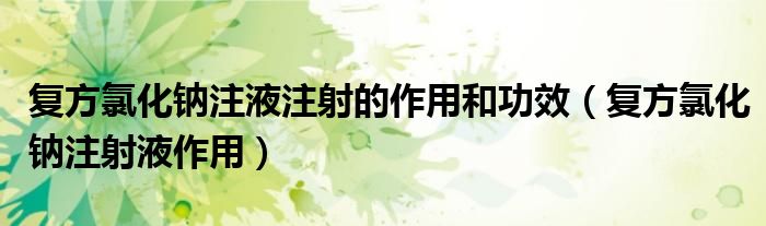 大家好,linda来为大家解答以上的问题。复方氯化钠注液注射的作用和功效,复方氯化钠注射液作用很多人还不知道,现在让我们一起来看看吧!
