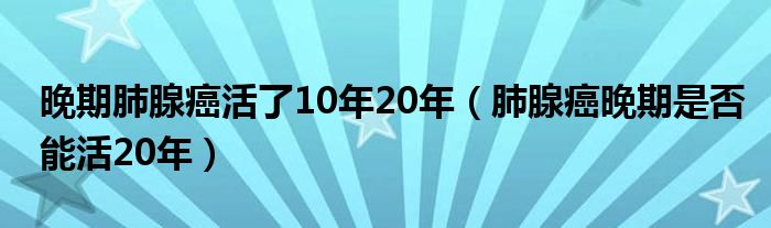 大家好,linda来为大家解答以上的问题。晚期肺腺癌活了10年20年,肺腺癌晚期是否能活20年很多人还不知道,现在让我们一起来看看吧!