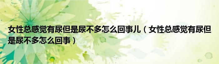大家好,linda来为大家解答以上的问题。女性总感觉有尿但是尿不多怎么回事儿,女性总感觉有尿但是尿不多怎么回事很多人还不知道,现在让我们一起来看看吧!
