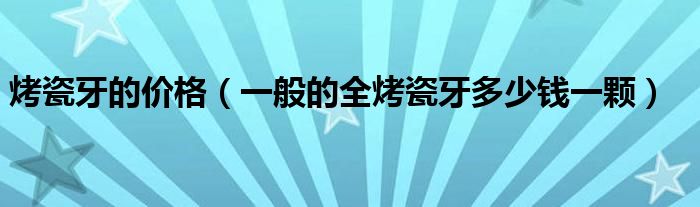 大家好,linda来为大家解答以上的问题。烤瓷牙的价格,一般的全烤瓷牙多少钱一颗很多人还不知道,现在让我们一起来看看吧!