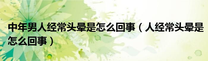 大家好,linda来为大家解答以上的问题。中年男人经常头晕是怎么回事,人经常头晕是怎么回事很多人还不知道,现在让我们一起来看看吧!