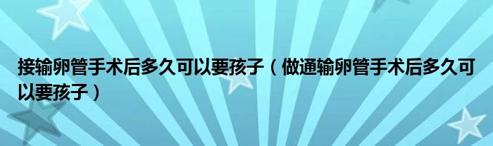 大家好,linda来为大家解答以上的问题。接输卵管手术后多久可以要孩子,做通输卵管手术后多久可以要孩子很多人还不知道,现在让我们一起来看看吧!
