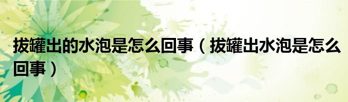 大家好,linda来为大家解答以上的问题。拔罐出的水泡是怎么回事,拔罐出水泡是怎么回事很多人还不知道,现在让我们一起来看看吧!