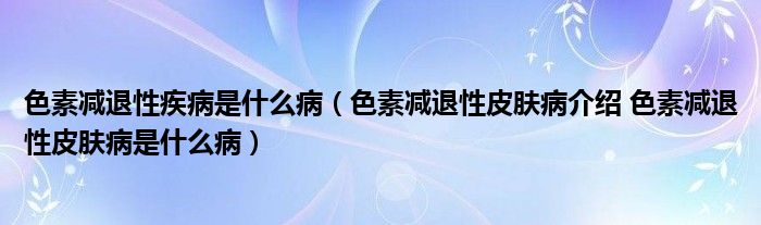 大家好,linda来为大家解答以上的问题。色素减退性疾病是什么病,色素减退性皮肤病介绍 色素减退性皮肤病是什么病很多人还不知道,现在让我们一起来看看吧!
