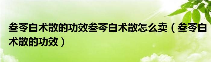 大家好,linda来为大家解答以上的问题。叁苓白术散的功效叁芩白术散怎么卖,叁苓白术散的功效很多人还不知道,现在让我们一起来看看吧!